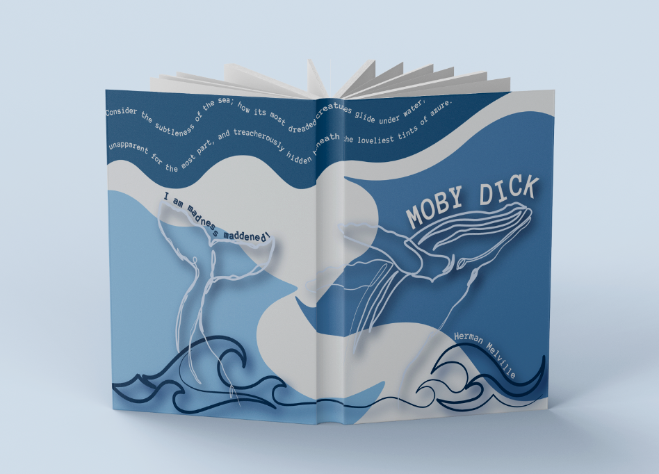 The design shows the voyage across the ocean as Ishmael chases the white whale he considers to be evil.